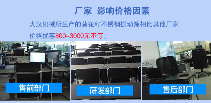 大漢機(jī)械所生產(chǎn)的葵花籽不銹鋼振動(dòng)篩在原有的篩分工藝基礎(chǔ)上精益求精,不僅每一道工序自主研發(fā)、生產(chǎn)設(shè)計(jì)和銷(xiāo)售,省去了大量的外購(gòu)成本和中間商環(huán)節(jié),力求成本較低化薄利多銷(xiāo)讓利給廣大用戶,相比其他廠家價(jià)格優(yōu)惠800-3000元不等。
