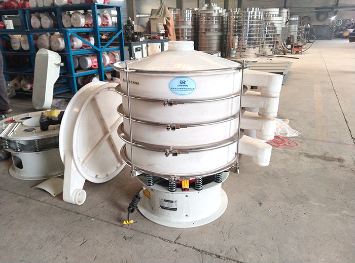 10、塑料振動(dòng)篩與物料接觸部分采用的是PP塑料材質(zhì),是目前有效解決具有氧化、腐蝕鋼鐵材質(zhì)的物料篩分、除雜、過濾的方案,并且確保了物料在篩分過程中不會(huì)變質(zhì)。