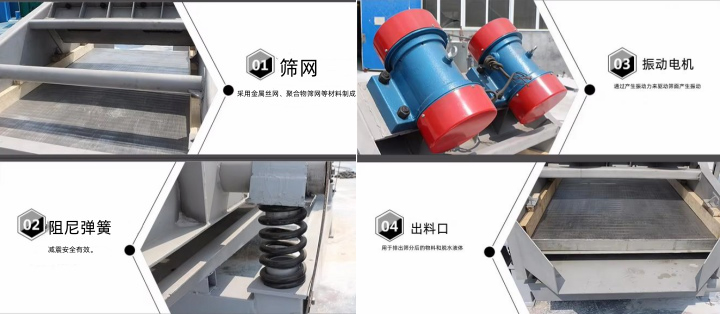 1、振動器(振動電機(jī)):振動器是整個振動篩的核心部件,通過產(chǎn)生振動力來驅(qū)動篩面產(chǎn)生振動,實現(xiàn)固液分離和脫水的目的。