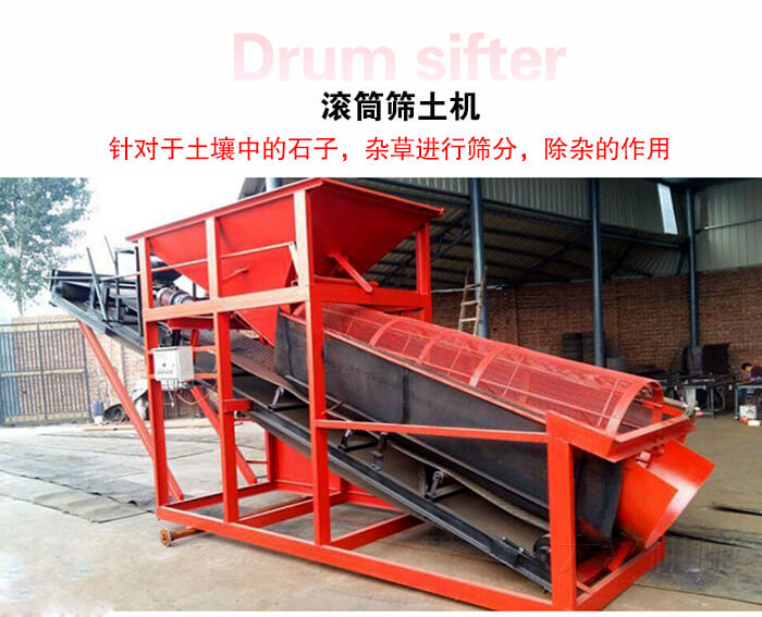 滾筒篩土機主要由:電機,減速機,滾筒裝置,機架,密封蓋等組成,