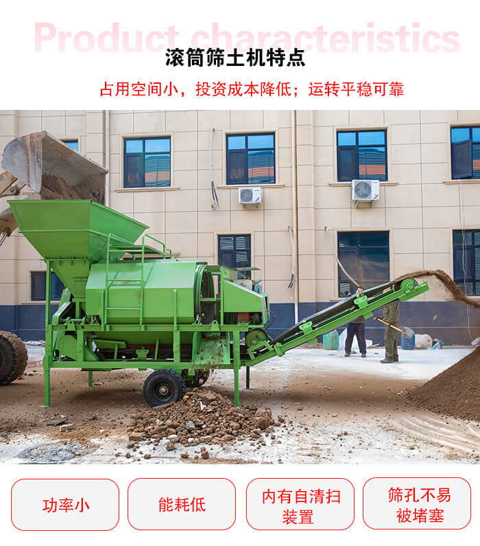 滾筒篩土機是針對于土壤進行篩分的專屬性篩分設備,針對于土壤中的石子,雜草進行篩分,除雜的作用,幫助一些科研農(nóng)業(yè)篩出優(yōu)質細膩的土壤。該設備結構與普通滾筒篩結構大致相同。