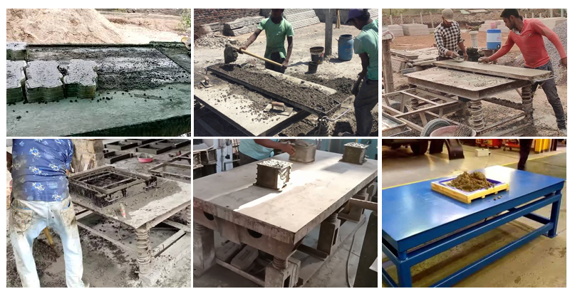 工作臺下面的臥式振動電機產(chǎn)生足夠的澎湃均勻的激振力并傳導(dǎo)到臺面上,從而驅(qū)動臺面上的模具中的水泥等澆筑液在激烈的震蕩下產(chǎn)生上下運動的加速度,從而擠壓出物料間的氣泡,減少澆注液體間的空氣間隙,從而達到提升預(yù)制件等澆筑模具的質(zhì)量提升的目的。