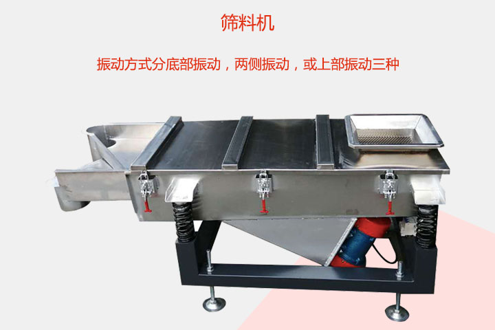 篩料機為方形振動篩,該設備采用底部振動,兩側振動,或上部振動三種振動方式,但其底部振動是比較常見的,該設備采用的雙振動源底部振動方法。