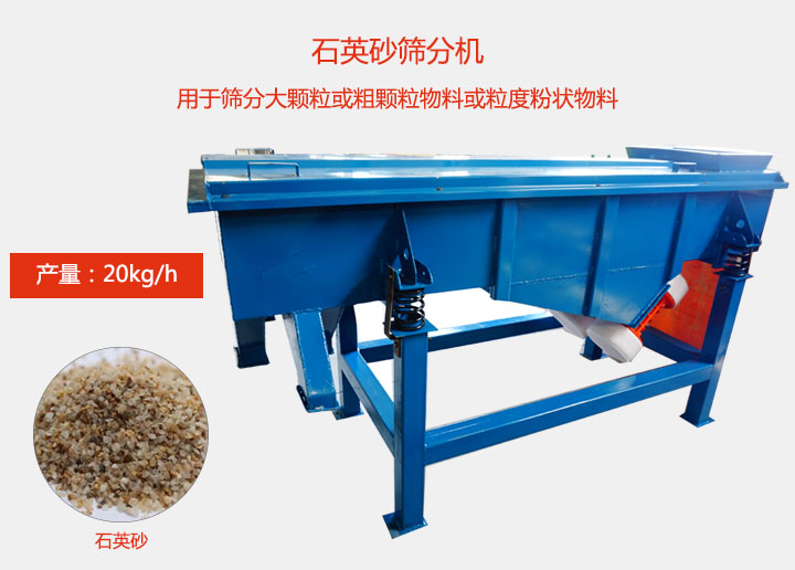 石英砂篩分機(jī)是用于石英砂粉末和顆粒的篩選和分級而設(shè)計(jì)的長方形振動(dòng)篩分機(jī),主要針對產(chǎn)量要求處理量大,產(chǎn)品附加值不是很高的產(chǎn)品工藝使用,性價(jià)比較高。