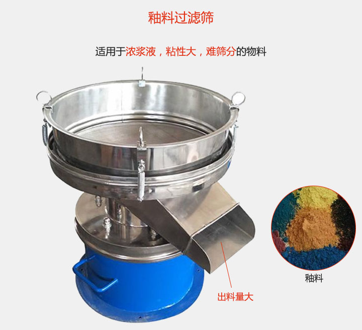 釉料過(guò)濾篩適用于:食品,陶瓷,醫(yī)藥,化工,油漆,冶金等行業(yè)廣泛應(yīng)用。
